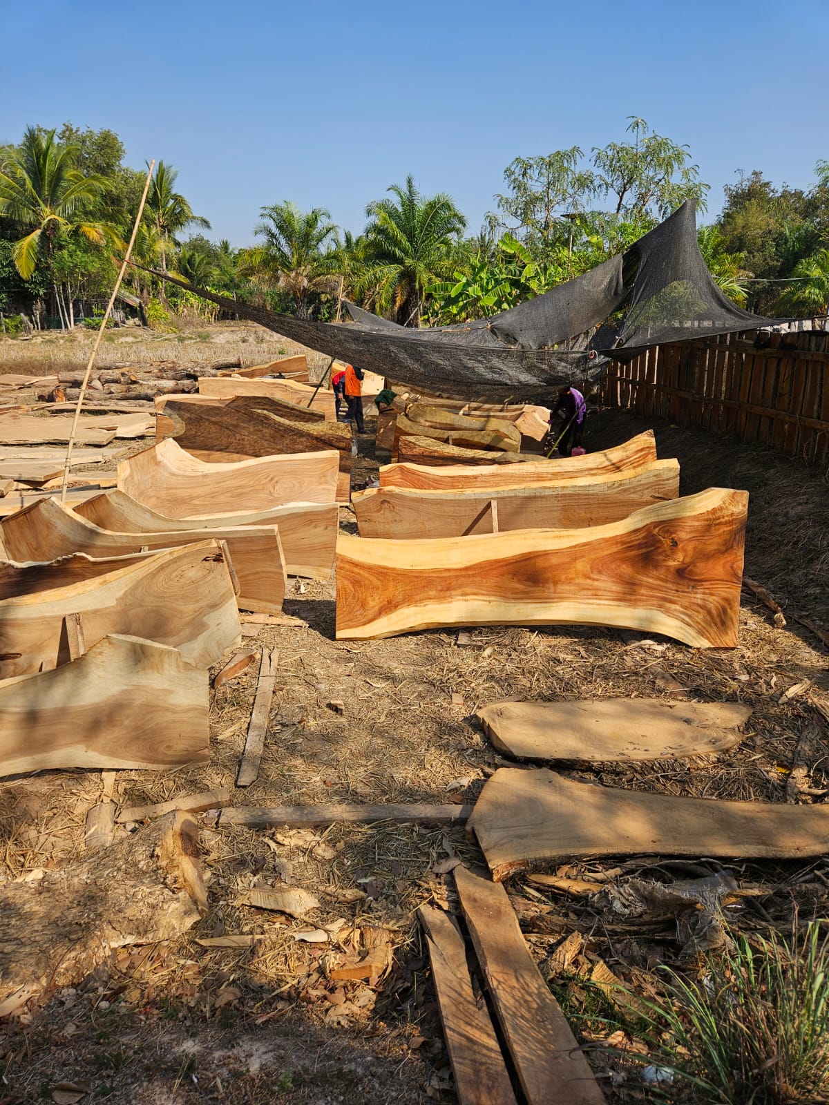 Das verwendete Akazienholz stammt aus kontrolliertem Anbau in Thailand und wird unter fairen Bedingungen verarbeitet. Nach der sorgfältigen Trocknung und Bearbeitung wird jede Tischplatte in traditioneller Handarbeit veredelt – geölt, geschliffen und für den täglichen Gebrauch vorbereitet.