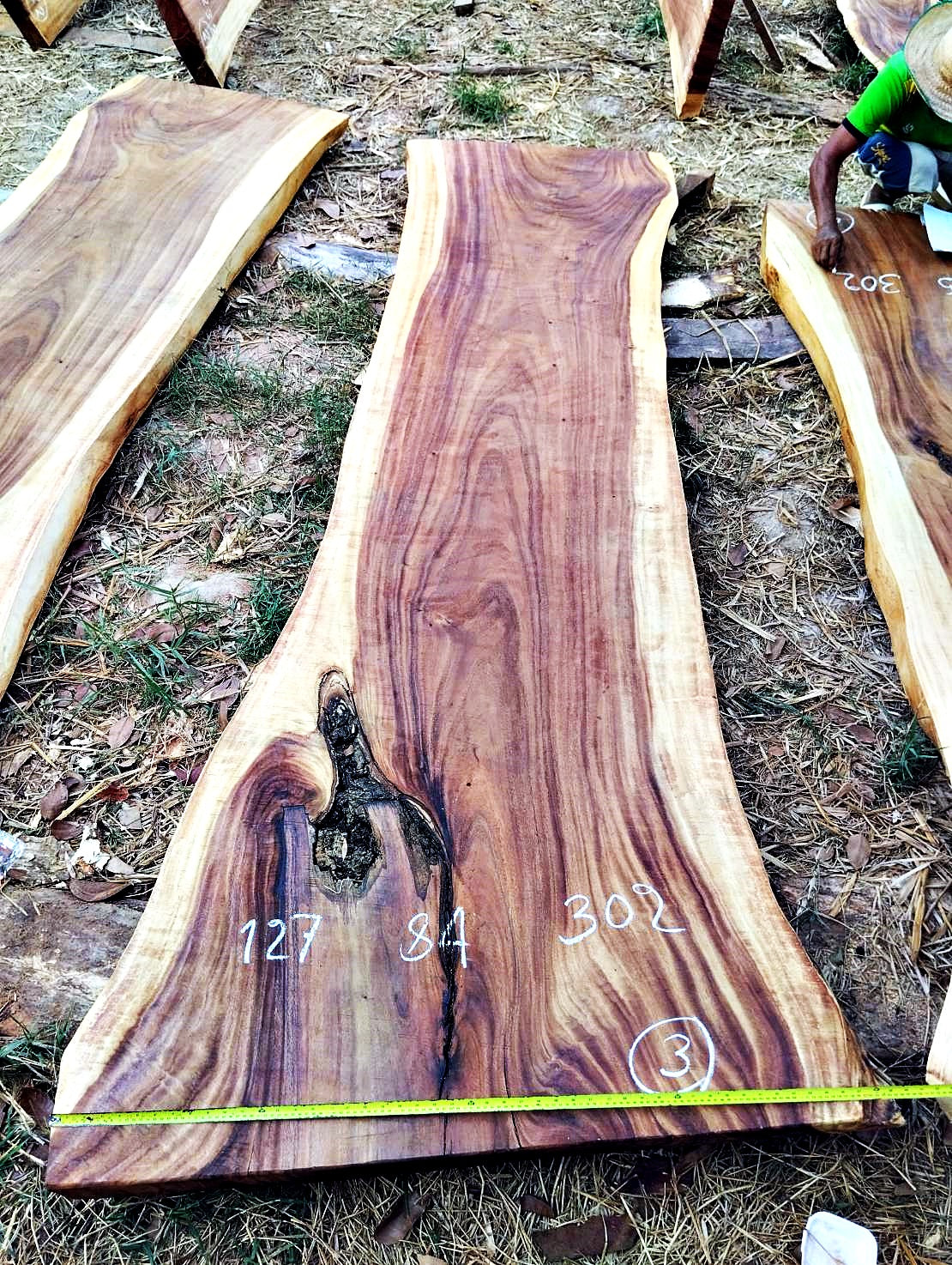 Die Herstellung der Tische erfolgt in Thailand, wo erfahrene Handwerker die Akazienstämme in einzigartige Tischdesigns verwandeln. 👨🔧